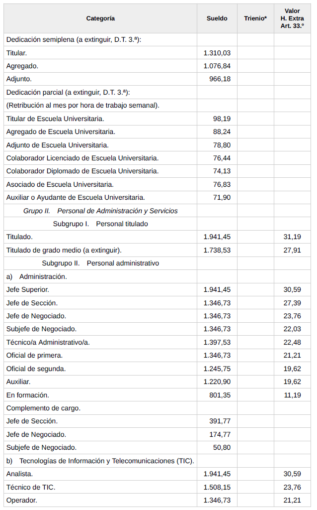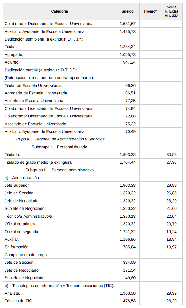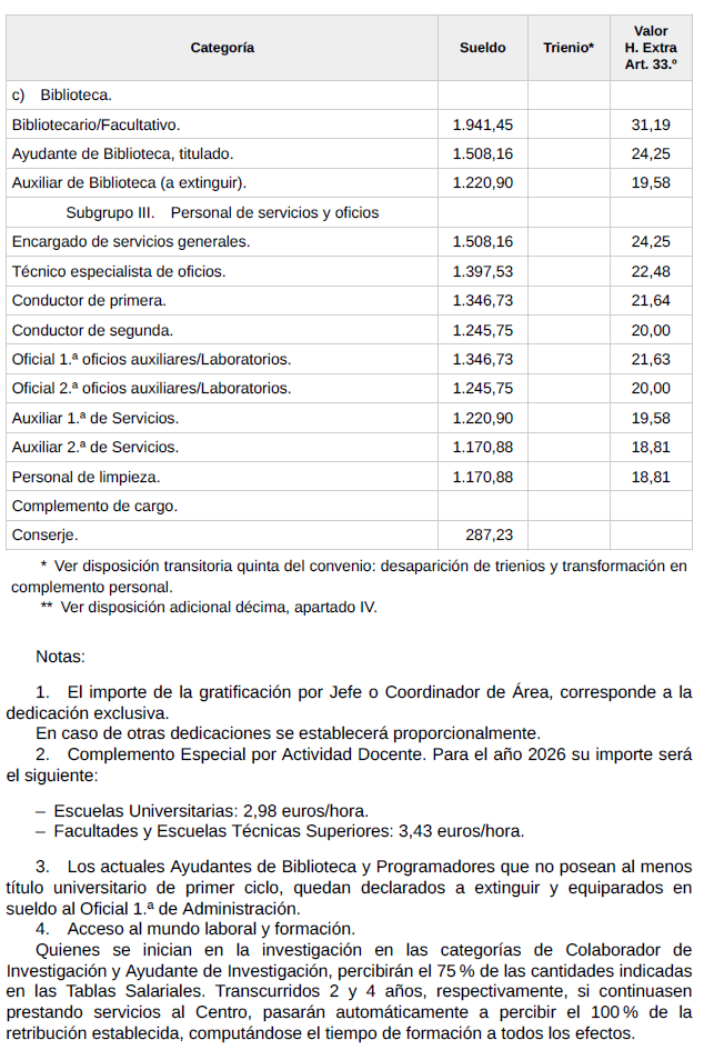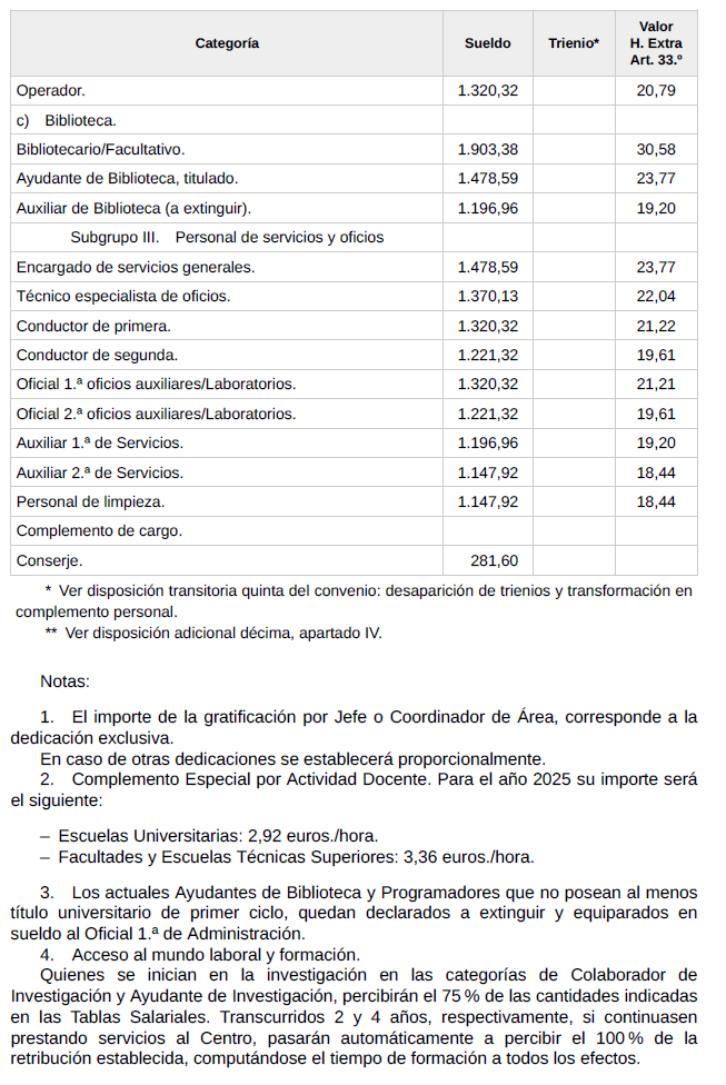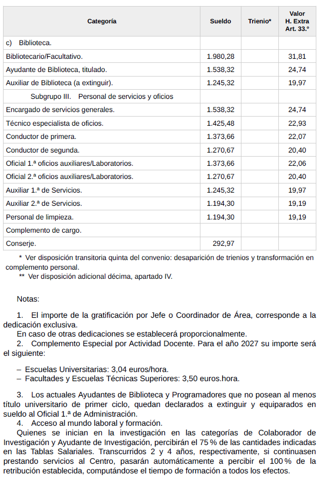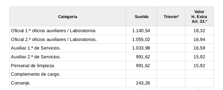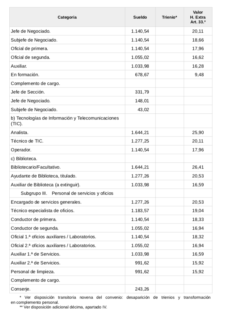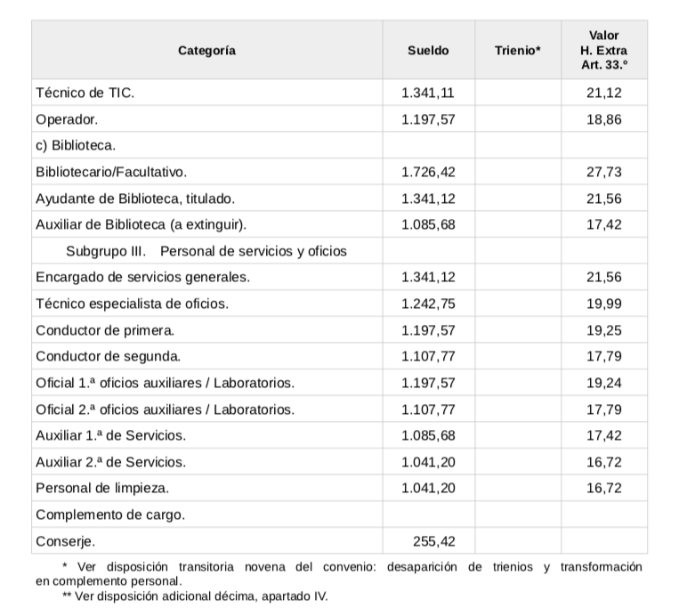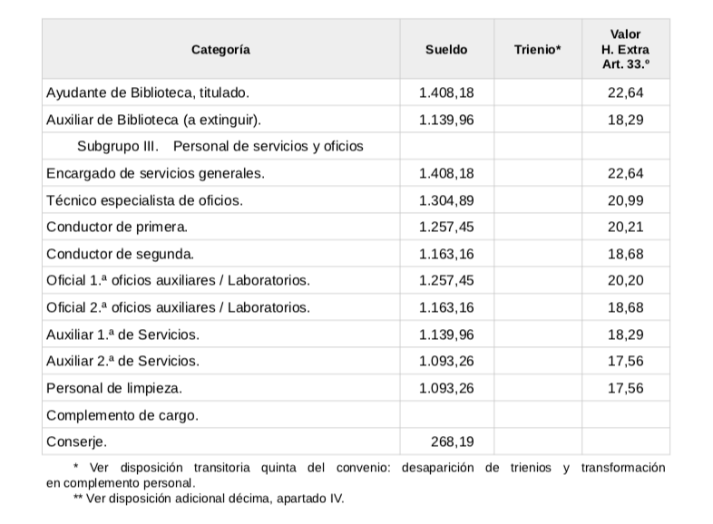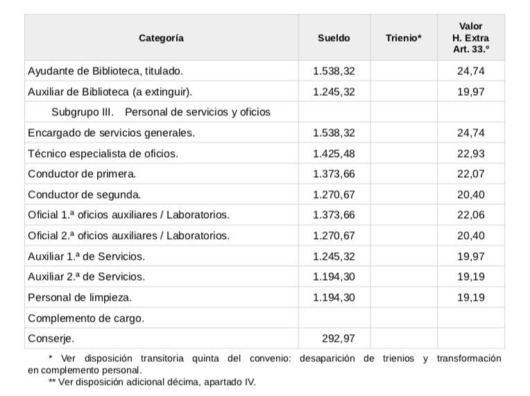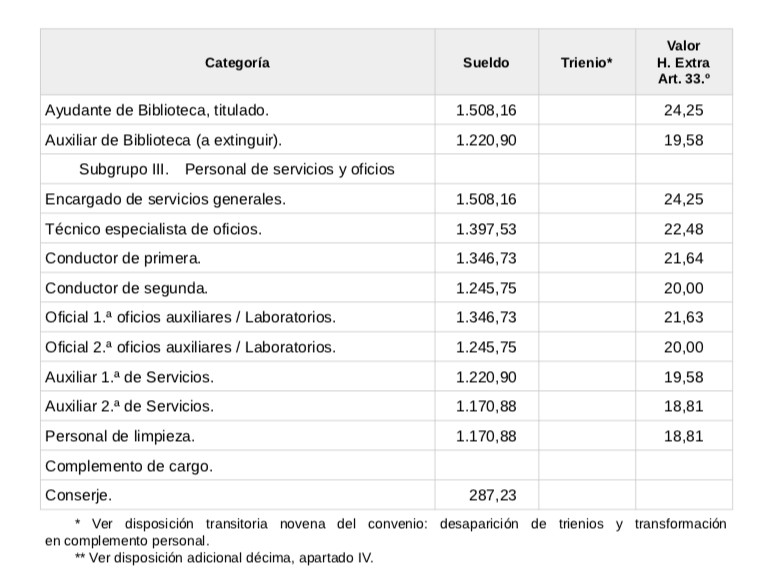 * Ver disposición transitoria novena del convenio: desaparición de trienios y transformación en complemento personal.