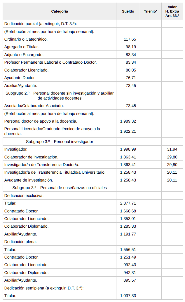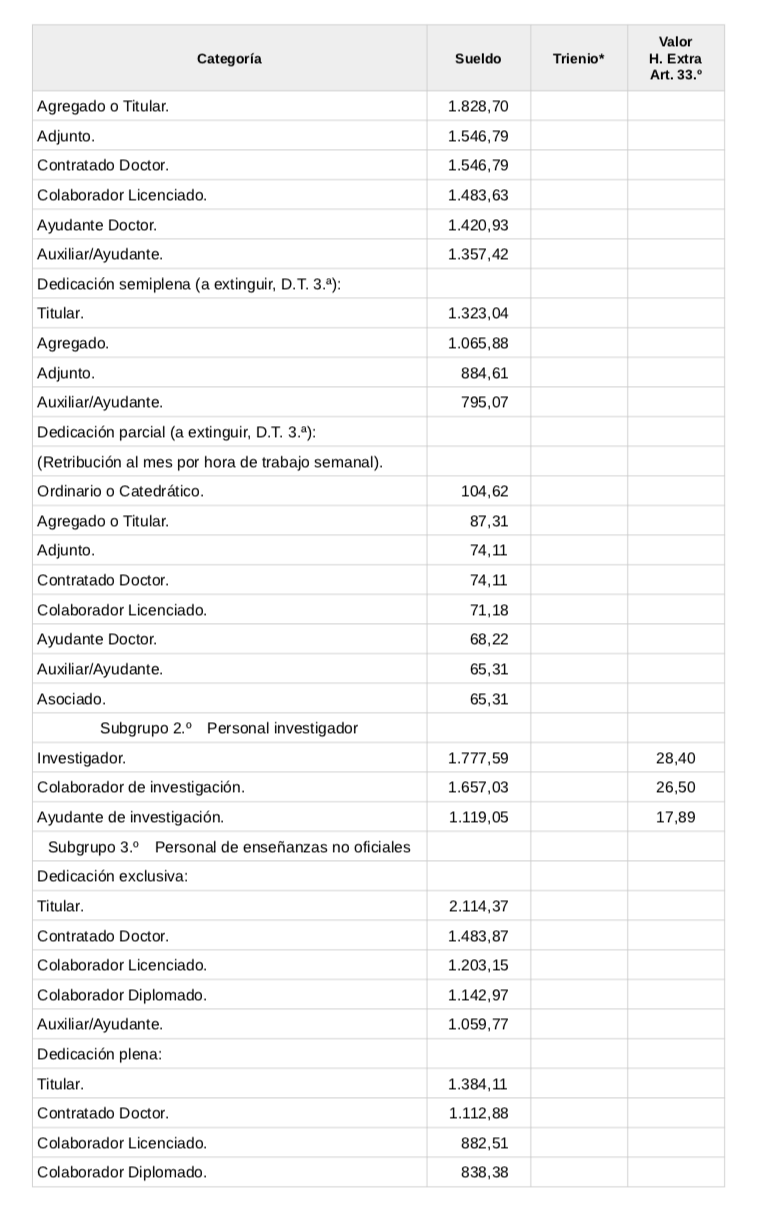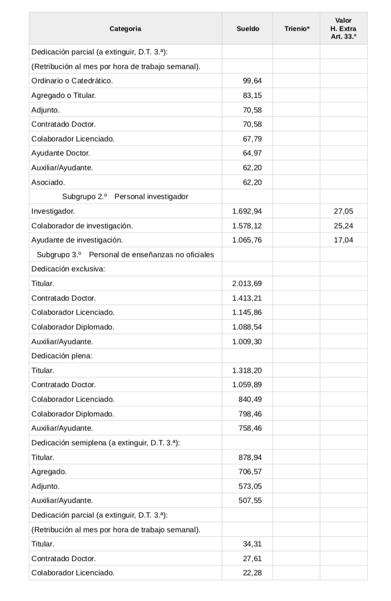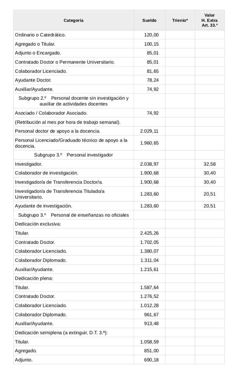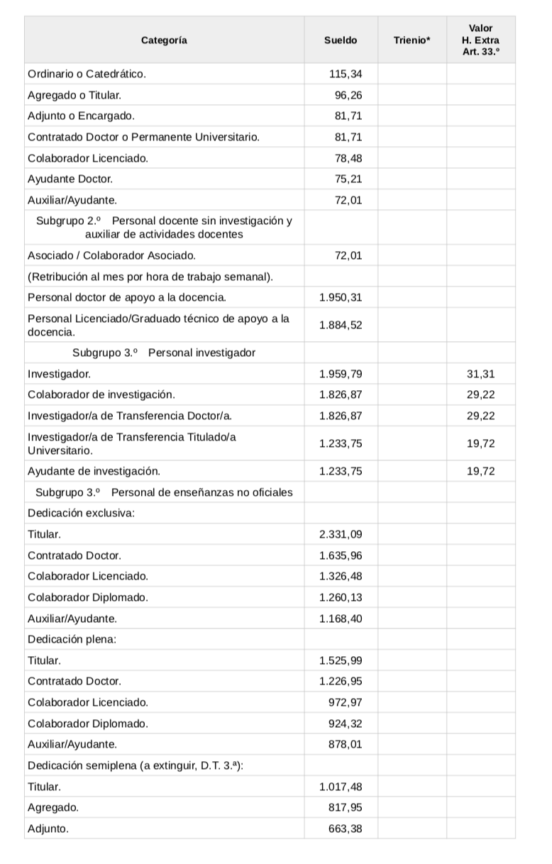 Subgrupo 1.º Personal Docente-Investigador. Sus categorías pueden ser, a título enunciativo, las siguientes: