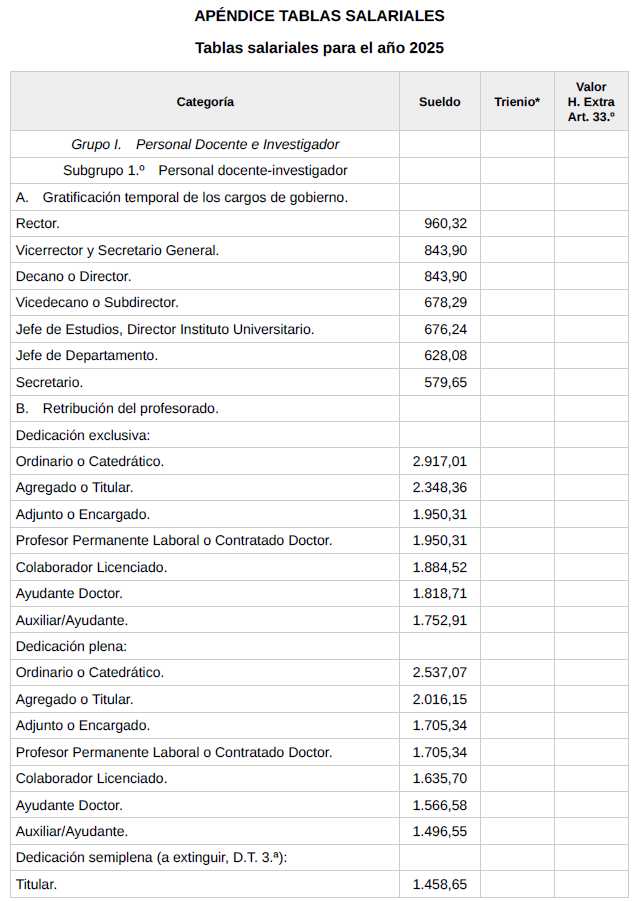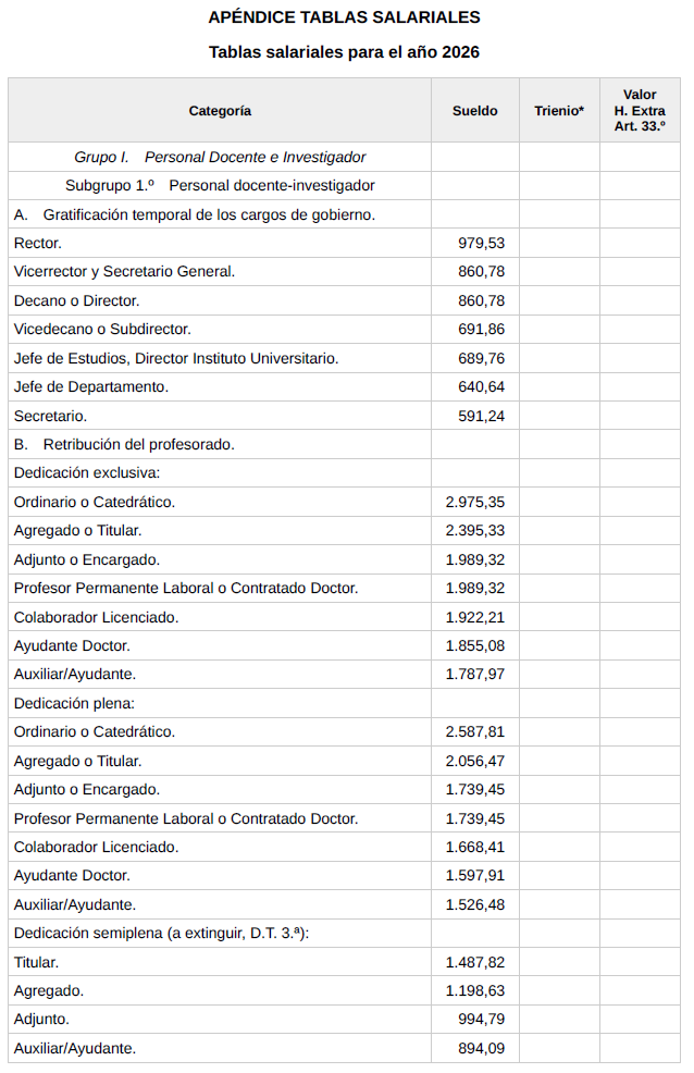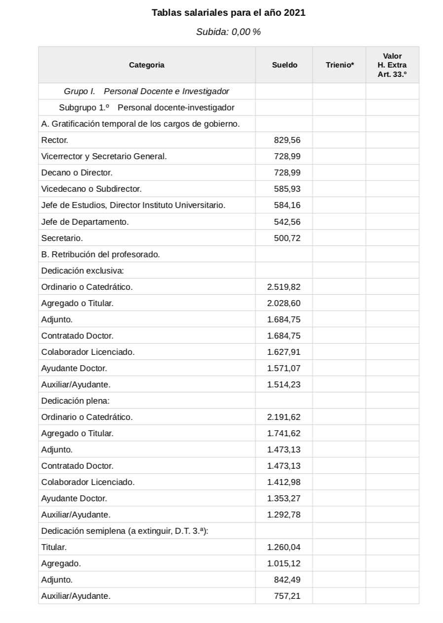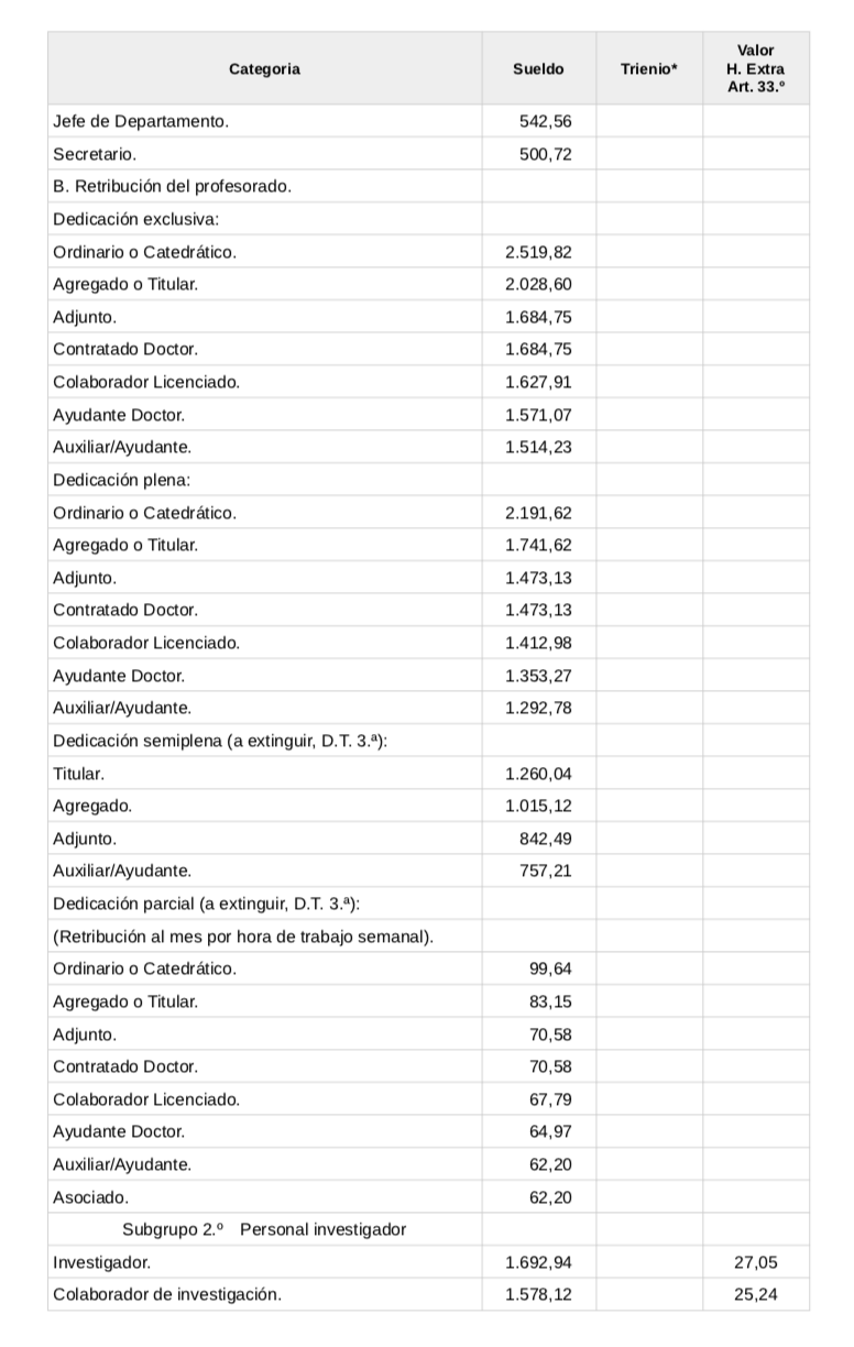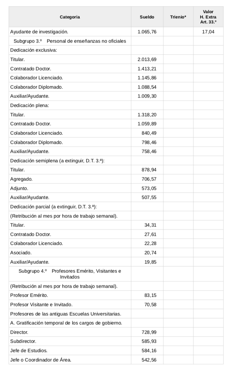 Subgrupo 1.º Personal Docente-Investigador. Sus categorías pueden ser, a título enunciativo, las siguientes: