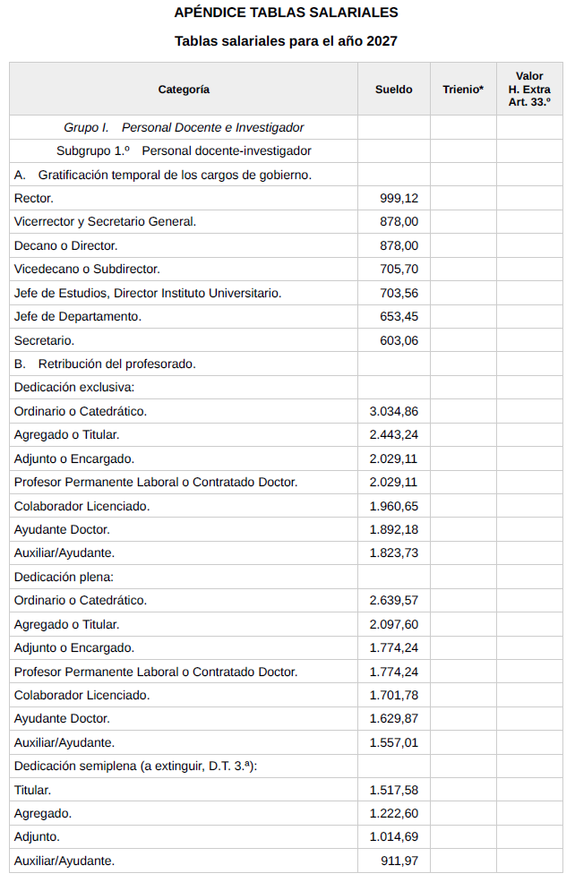 2. Complemento Especial por Actividad Docente. Para el año 2027 su importe será el siguiente: