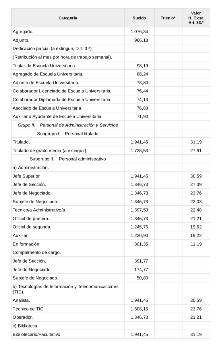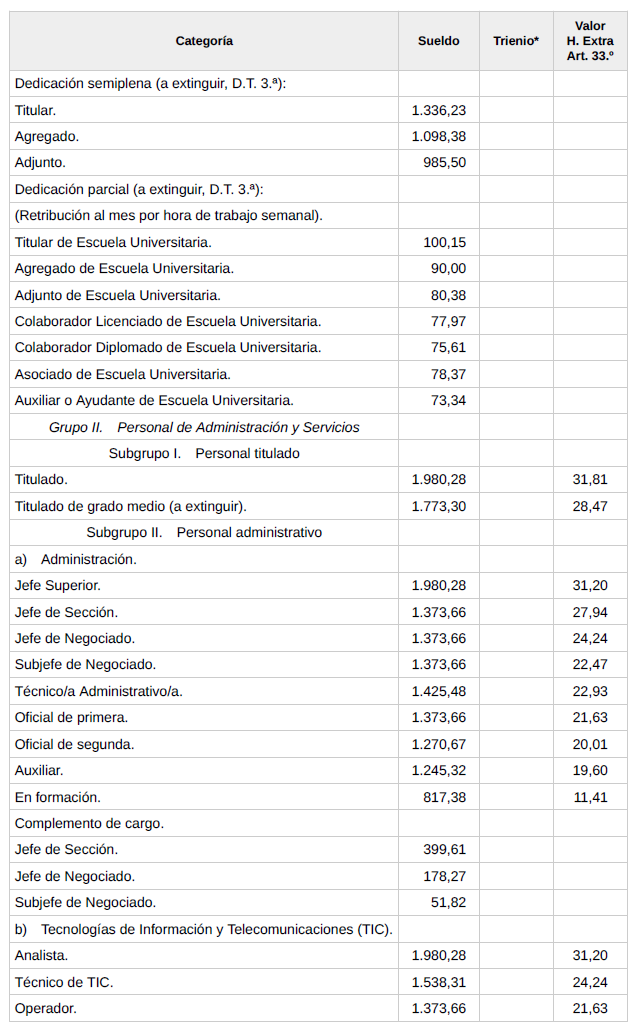 3. Los actuales Ayudantes de Biblioteca y Programadores que no posean al menos título universitario de primer ciclo, quedan declarados a extinguir y equiparados en sueldo al Oficial 1.ª de Administración.