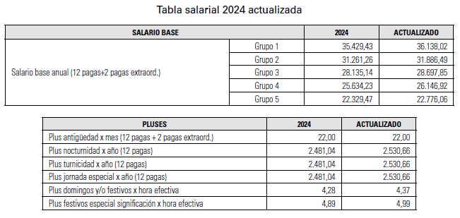 A continuación, tanto la asociación empresarial como las organizaciones sindicales han decidido adoptar un acuerdo para la actualización de las tablas salariales de 2024, acordando lo siguiente: