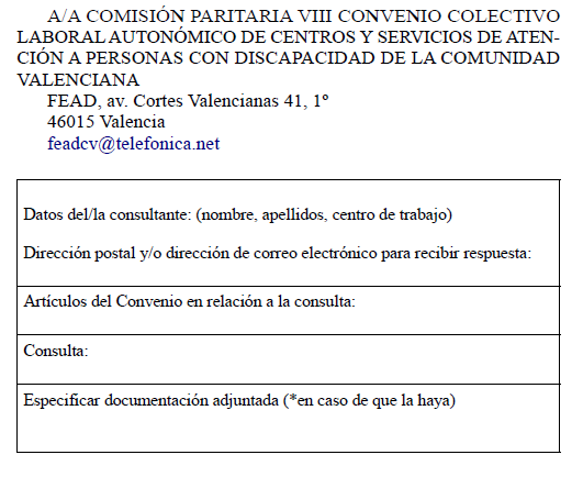 COMISIÓN PARITARIA DEL VIII CONVENIO COLECTIVO LABORAL AUTONÓMICO DE CENTROS, ENTIDADES Y SERVICIOS DE ATENCIÓN A PERSONAS CON DISCAPACIDAD DE LA COMUNIDAD VALENCIANA.