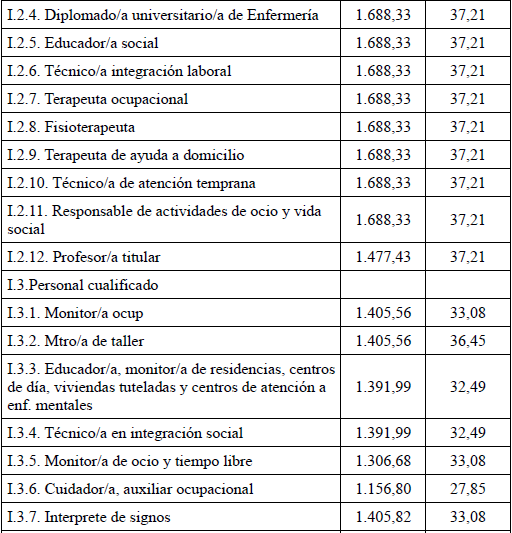 Grupo I, Personal de atención directa:.