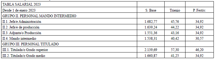 MODIFICACIÓN DEL SALARIO BASE DE 2023 DE DETERMINADAS CATEGORÍAS.