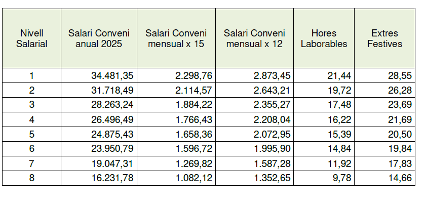 ANNEX III.- TAULA SALARIAL APLICANT 3,15% A 01.01.2025.