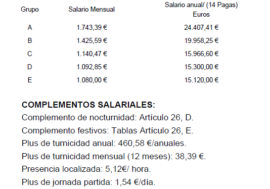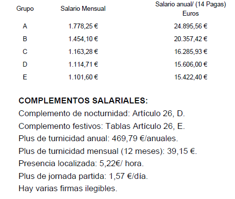 -Grupo E: Portero/a, Ordenanza, Vigilante, Pinche, Limpiador/a y Personal de Mantenimiento.