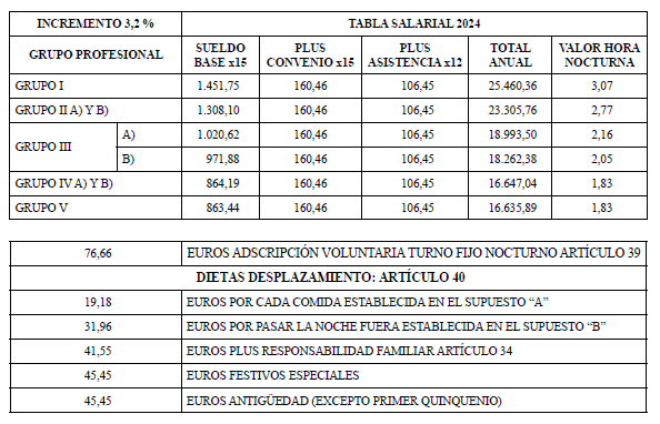 Se acompañan mediante anexo, las tablas salariales aplicables en 2024, que incorporan ya esa revisión del 3,2% y que ha sido aprobada por unanimidad de miembros.