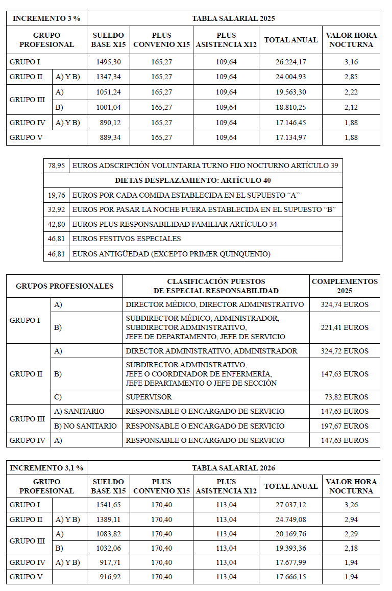 Dichas tablas incluyen una revisión salarial para 2025 del 3,1 %, para todos los conceptos salariales expresados en euros, manteniéndose los expresados en porcentajes.