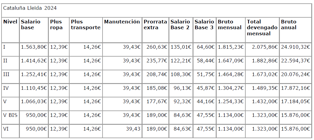 Con motivo de la negociación de las tablas salariales para el año 2024 del II Convenio Colectivo de Trabajo para el sector de las Colectividades de Cataluña, ambas partes,