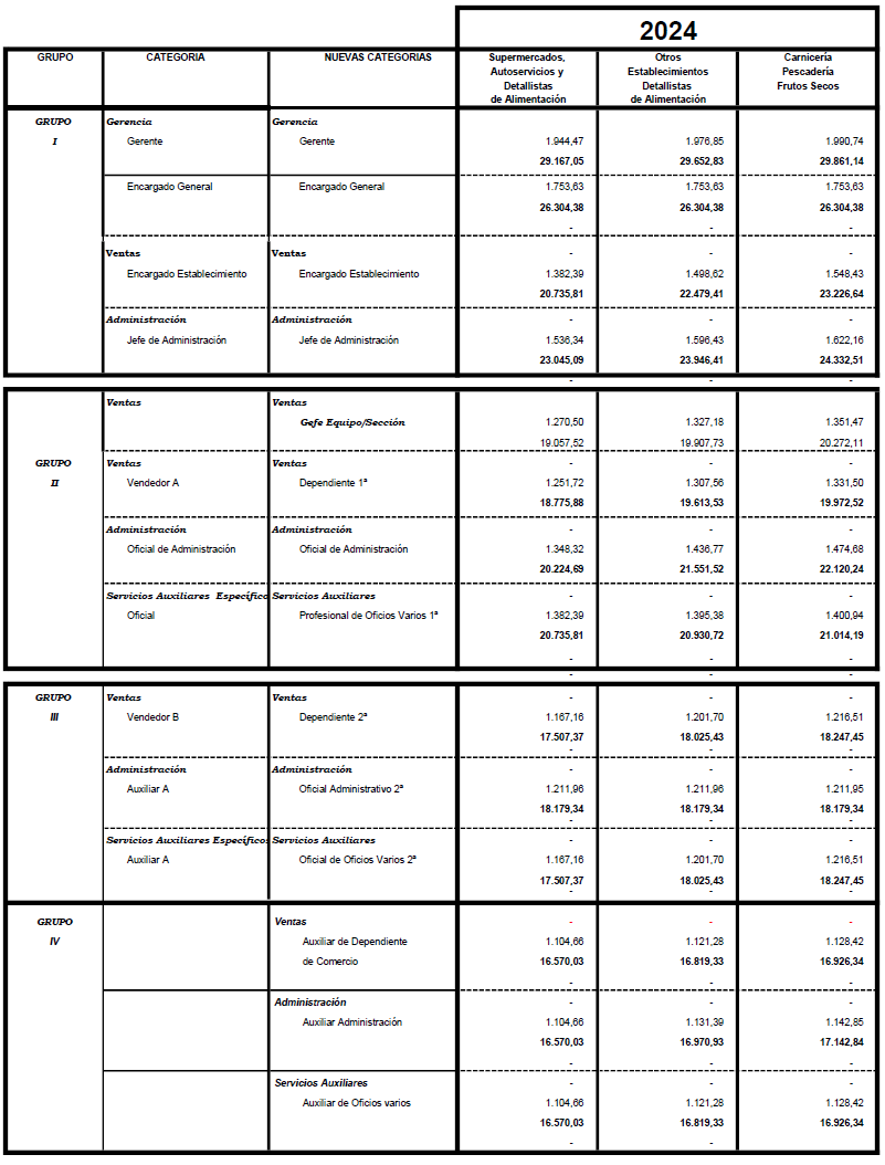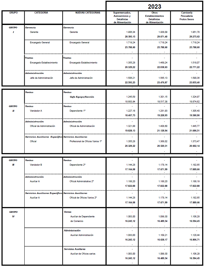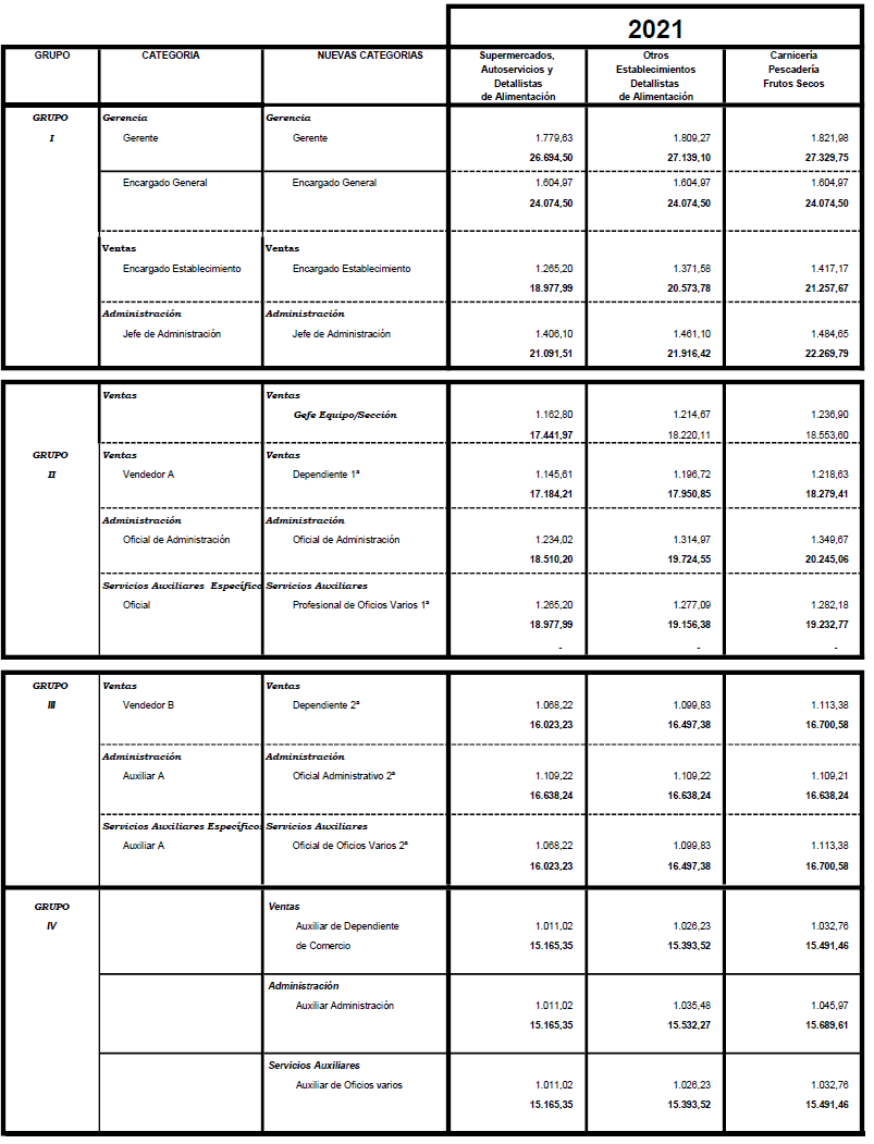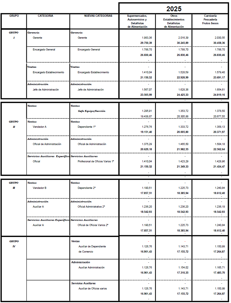 – Jefe de equipo/sección, dependiente de comercio de 1.ª, oficial administrativo 1.ª, profesional de oficios varios 1.ª.