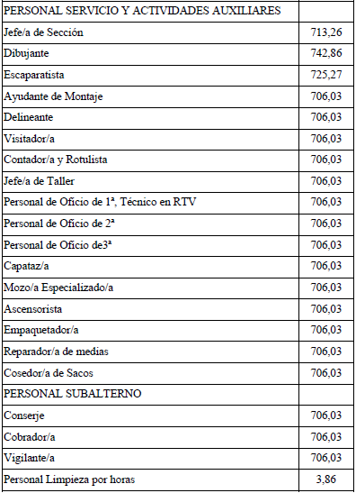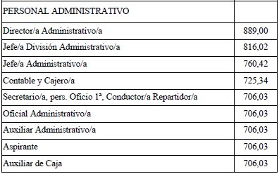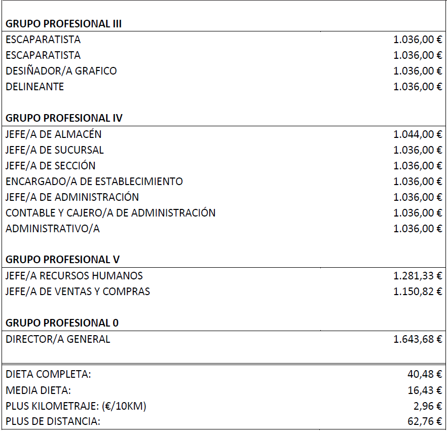 Por tanto, la tabla salarial con las categorías determinadas del Convenio de Comercio de Bazares para la Provincia de Santa Cruz de Tenerife para los años 2021 y 2022 es la que se señala, quedando esta para determinar la base de los salarios para los años siguientes.