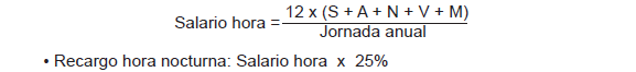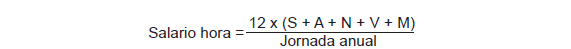 El salario hora profesional se hallará aplicando la fórmula siguiente: