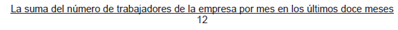 La suma del número de trabajadores de la empresa por mes en los últimos doce meses 12 La cuantía resultante se redondeará despreciando los decimales a la baja.