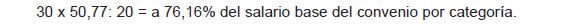La equivalencia para calcular el salario base de los trabajadores/as a tiempo parcial es: 20 horas/semana igual al 50,77% del salario base de la tabla y categoría del trabajador. Cualquier cálculo en función de las horas contratadas deberá respetar la anterior relación, por ejemplo (contrato de 30 horas/semana):