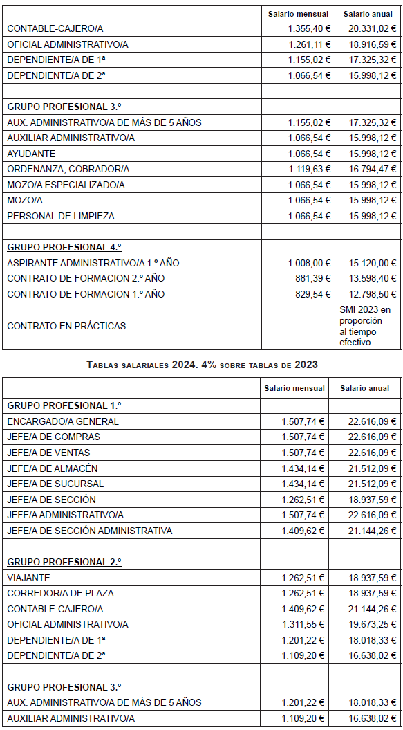 Se establece para el año 2024 un incremento del 4% sobre las tablas del año 2023 que se adjuntan como anexo II. Salvo para el complemento ad personam, que se revalorizará con el IPC real de 2023.