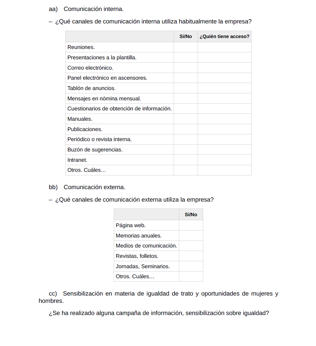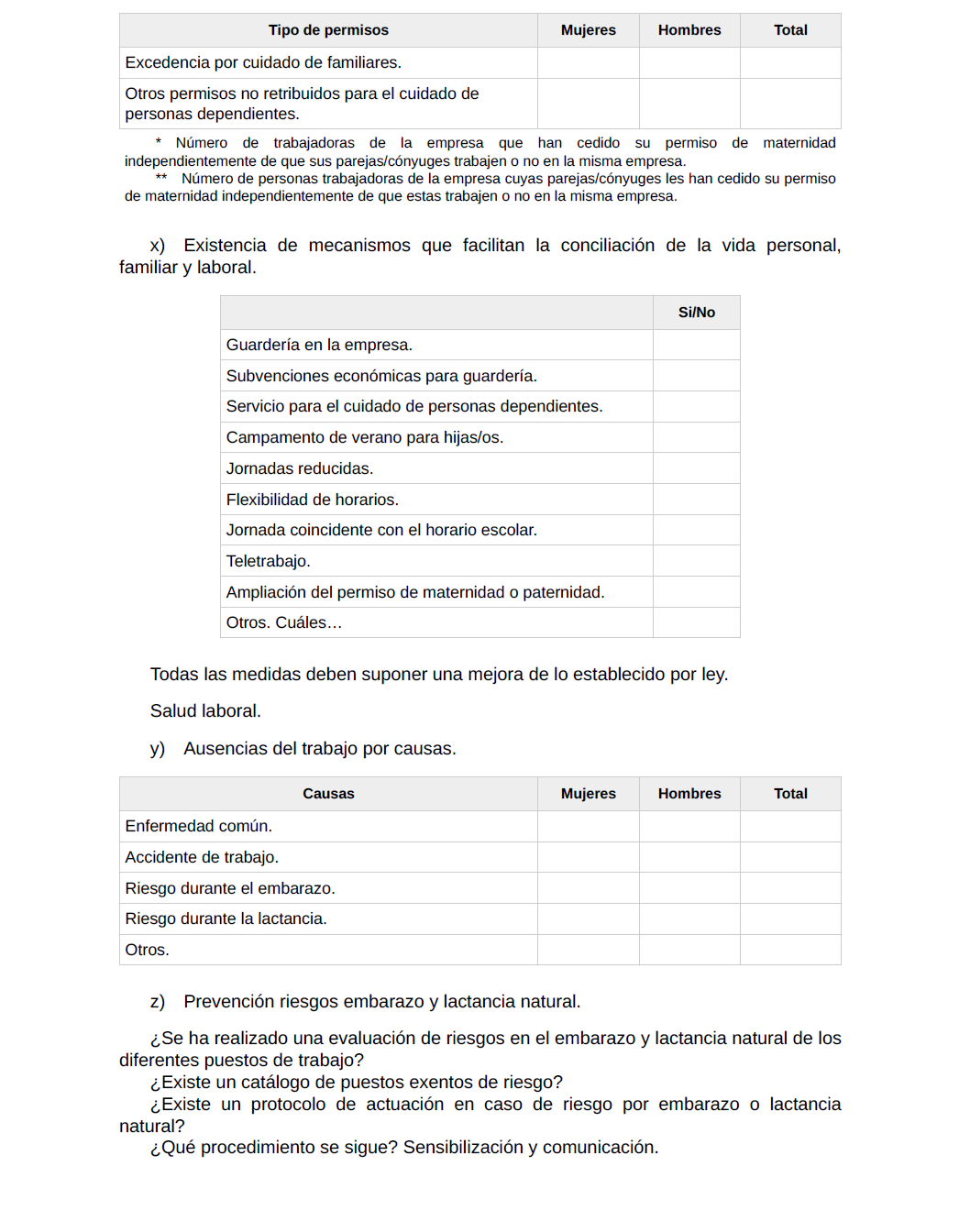 Permisos y beneficios sociales: en la aplicación de los derechos laborales para la plantilla sobre permisos y beneficios sociales, se tendrá en cuenta que no sean discriminatorios para el colectivo, teniendo en cuenta por ejemplo otros tipos de familia a la comúnmente denominada familia tradicional.