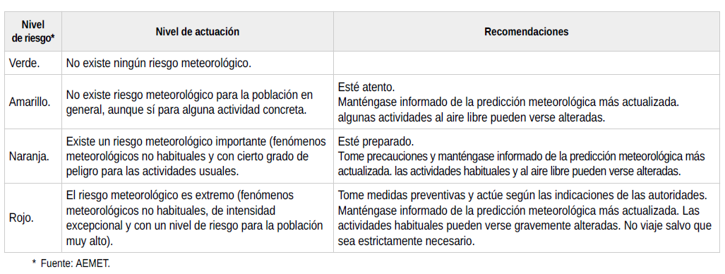 – Es importante informarse de las condiciones meteorológicas previstas y estar atento/a a las indicaciones que se vaya dando la autoridad competente.