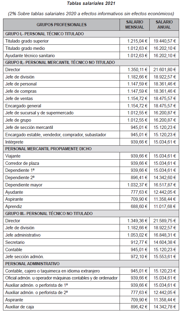 Ayudantes: Trabajadores que provengan de aprendizaje o aspirantazgo. El periodo máximo de permanencia en esta categoría será de dos años, a los dos años pasarán a la categoría de dependiente de 2ª.