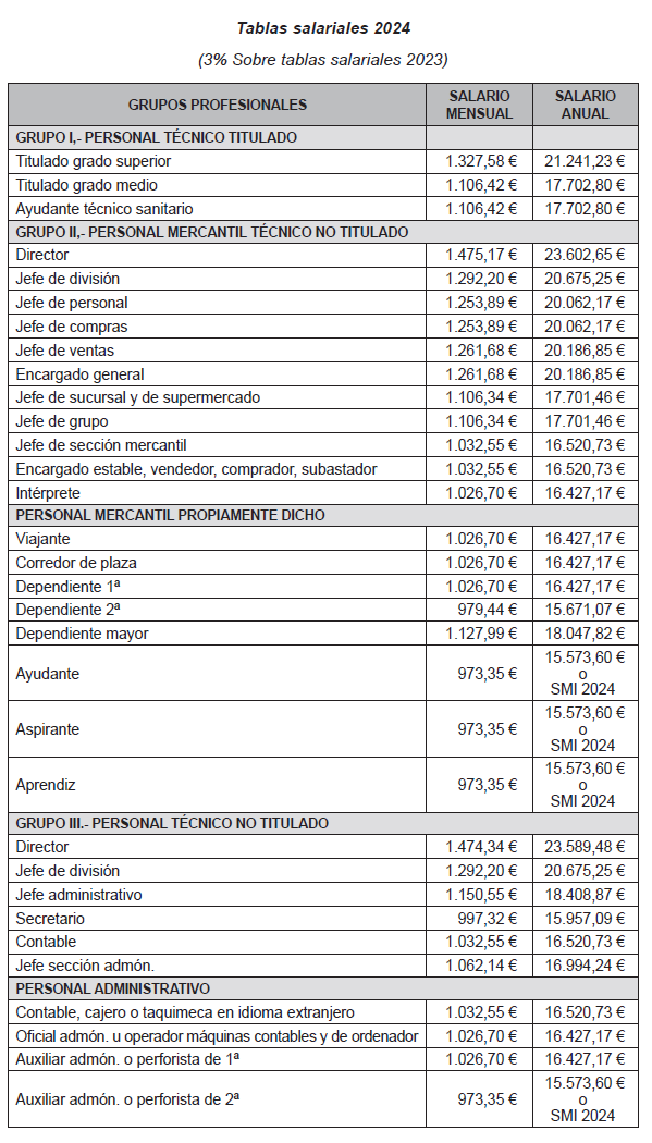 Para el año 2024, el incremento será el resultante de aplicar el 3% sobre las tablas de 2023.