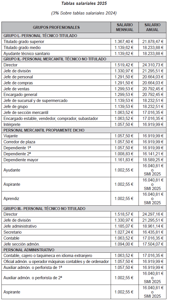 Para el año 2025, el incremento será el resultante de aplicar el 3% sobre las tablas de 2024.