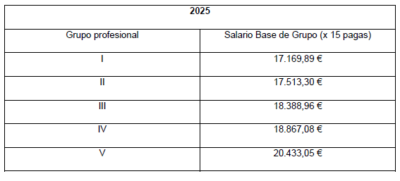 Dar por buenas las tablas salariales de 2025 aplicando el 3% sobre las tablas del 2024, quedando con la siguiente composición: