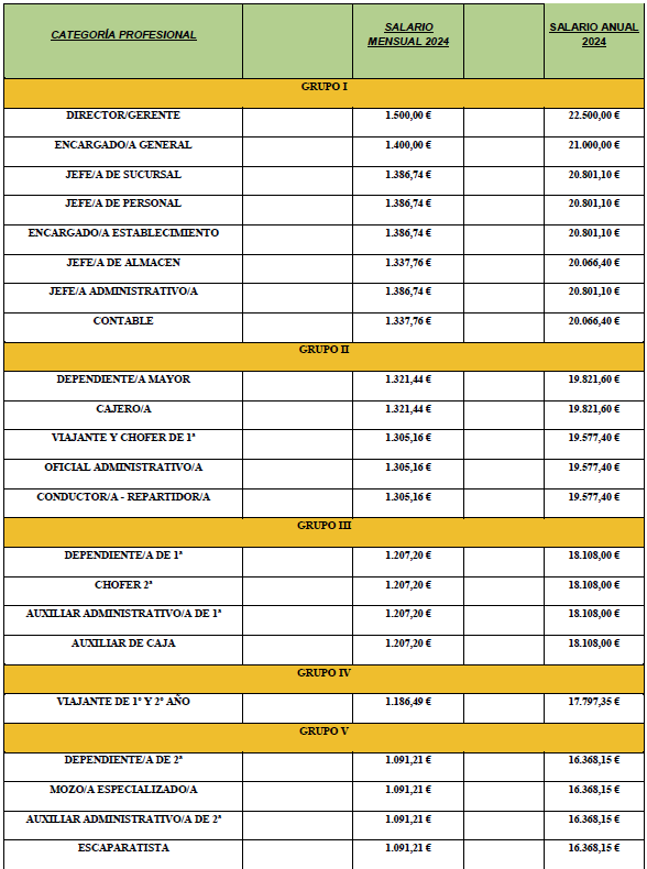 Conductor/a – repartidor/a -es quién conduce vehículos a motor, recoge, reparte y coloca las mercancías. Se le asimilará salarialmente conforme a la categoría del carnet preciso para la conducción de vehículo que utilizan.
