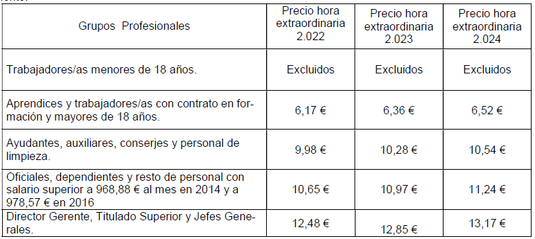 Las horas extraordinarias realizadas en los años 2.022, 2.023 y 2024 quedan fijadas según se indica seguidamente: