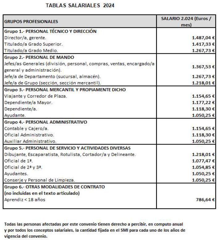 Para el año 2.024, se fija un incremento del 2,5 % sobre las tablas salariales del año 2.023.