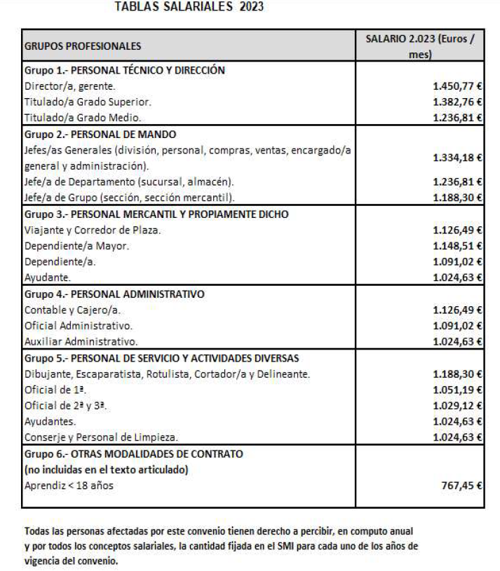 Para el año 2.023, se fija un incremento del 3 % sobre las tablas salariales del año 2.022.