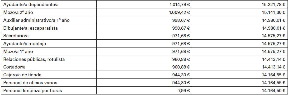 El registro, depósito y publicación de la correspondiente tabla salarial, con el incremento del 2’90 % sobre la tabla vigente, publicada en el B.O.P. de 11 de marzo de 2025, dicha tabla salarial la adjuntamos como Anexo único.
