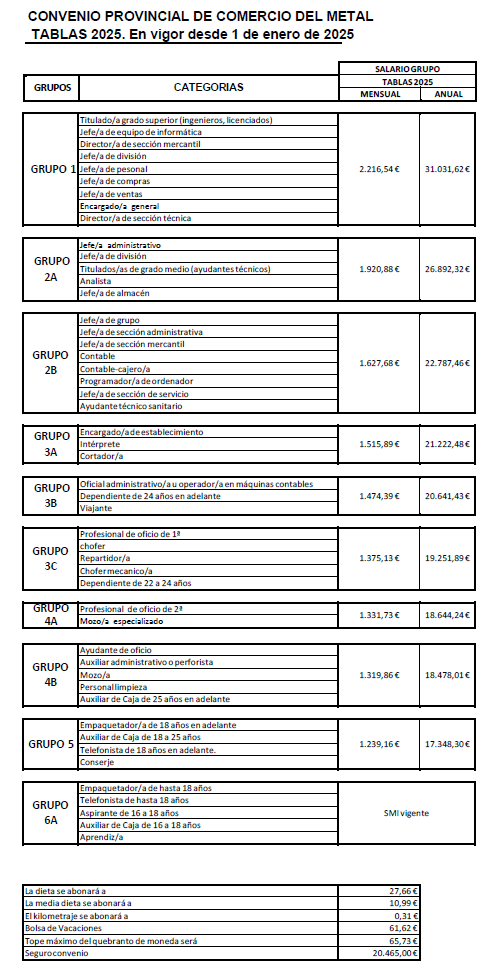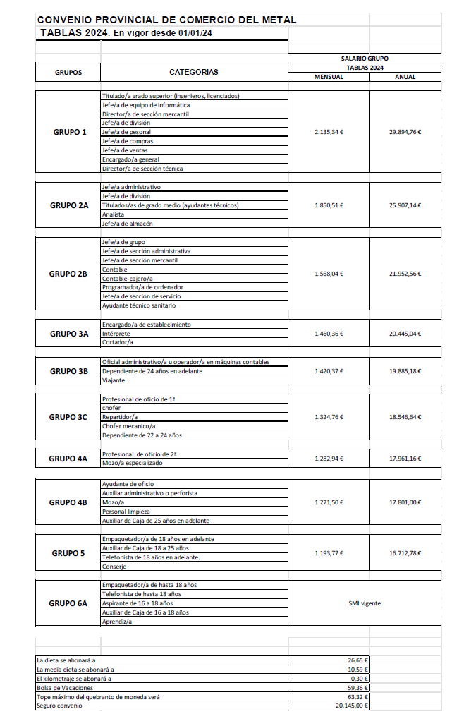 CONVENIO COLECTIVO DE COMERCIO DEL METAL DE LA PROVINCIA DE VALENCIA 2023-2025.