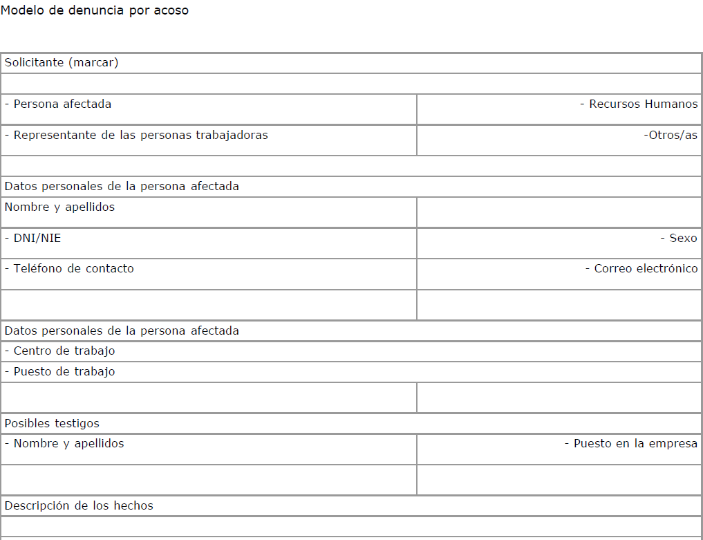 De acuerdo con el procedimiento de denuncia, cualquier persona que se considere víctima de acoso o quien tenga conocimiento de un caso de acoso lo pondrá en conocimiento de la empresa. Una vez presentada la denuncia, el procedimiento se aplicará de la forma establecida, debiendo ser informada la empresa implicada: