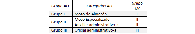 DISPOSICIÓN TRANSITORIA CUARTA, sobre equivalencias entre la clasificación profesional de los ámbitos provinciales anteriores al presente convenio colectivo y los grupos profesionales regulados en el mismo