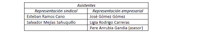 Finalmente, se faculta a Vicente Martínez Trenco a efectuar los trámites oportunos ante la autoridad laboral. Y sin más asuntos que tratar, se levanta la sesión, de cuyo contenido da cuenta la presente acta que es firmada en prueba de conformidad por una persona de cada representación, siendo las 13.00 horas del día indicado.