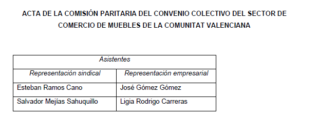 ACTA DE LA COMISIÓN NEGOCIADORA DEL CONVENIO COLECTIVO DEL SECTOR DE COMERCIO DE MUEBLES DE LA COMUNITAT VALENCIANA.