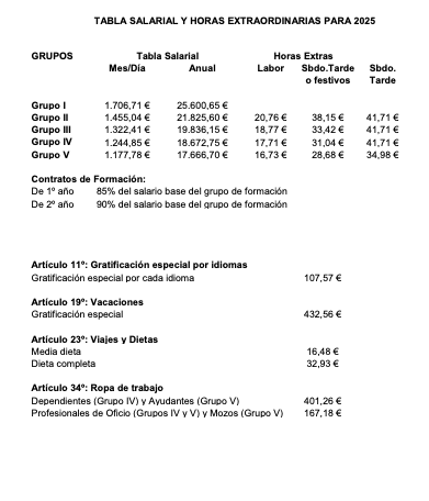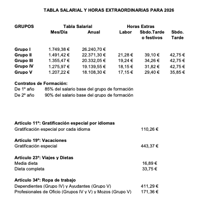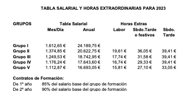 ANEXO I. TABLA SALARIAL Y HORAS EXTRAORDINARIAS PARA 2.023 – 2.024 – 2.025 Y 2.026