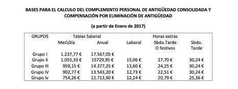 ANEXO II. BASES PARA EL CALCULO DEL COMPLEMENTO PERSONAL DE ANTIGÜEDAD CONSOLIDADA Y COMPENSACIÓN POR ELIMINACIÓN DE ANTIGÜEDAD