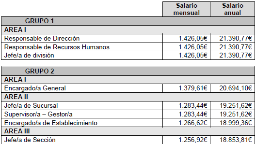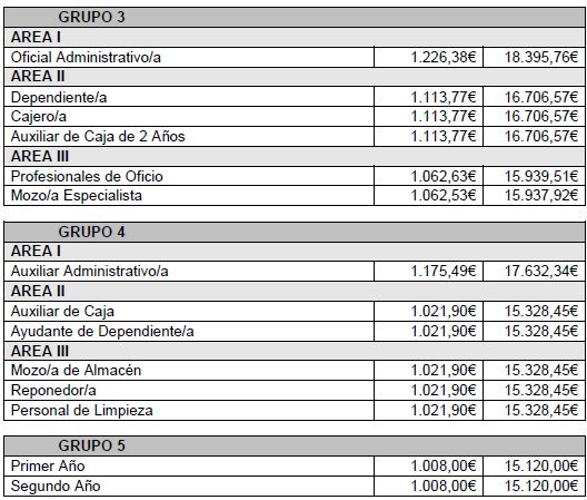 Por UGT se matiza una corrección de cinco céntimos a añadir que afecta al total anual del Auxiliar de Caja y las sucesivas categorías.