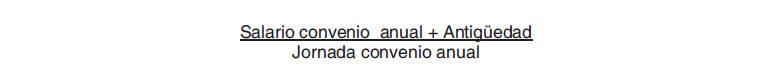 La hora extraordinaria será igual al valor de la hora normal, de conformidad con lo establecido en el artículo 35.1 del Estatuto de los Trabajadores, estableciéndose como valor de la hora normal el que resulte de la fórmula siguiente: