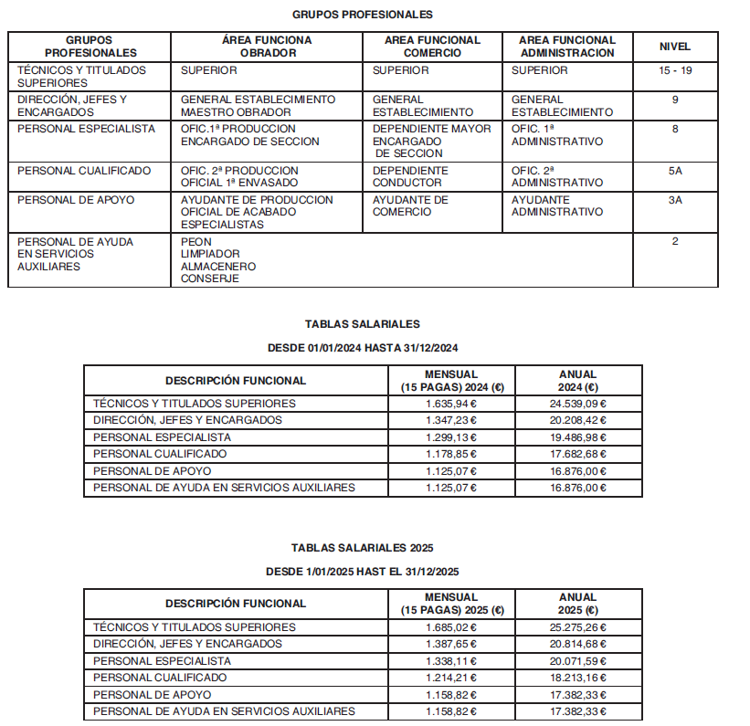 Durante el segundo año de vigencia del presente convenio colectivo (2025) y, por tanto, en el período comprendido entre el 1 de enero de 2025 hasta el 31 de diciembre de 2025, los salarios fijados en las tablas salariales vigentes se incrementarán en un porcentaje equivalente al Índice de Precios al Consumo (IPC) correspondiente al año 2024. Este incremento se aplicará con efectos y a partir del 1 de enero de 2025.