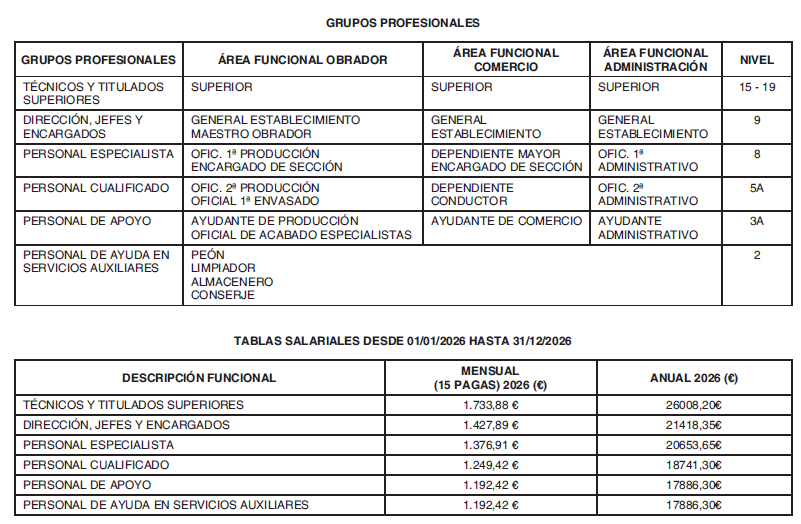 Durante el tercer año de vigencia del presente convenio colectivo (2026) y, por tanto, en el período comprendido entre el 1 de enero de 2026 hasta el 31 de diciembre de 2026, los salarios fijados en las tablas salariales vigentes se incrementarán en un porcentaje equivalente al Índice de Precios al Consumo (IPC) correspondiente al año 2025. Este incremento se aplicará con efectos y a partir del 1 de enero de 2026.
