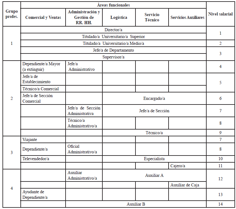 ANEXO I.- Áreas funcionales, grupos profesionales, categorías y niveles salariales.