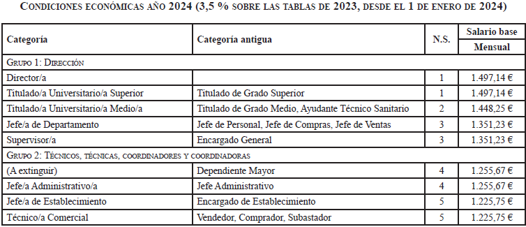 Año 2024: Incremento del 3,5 % sobre las condiciones económicas de 2023 en todos sus conceptos, con carácter retroactivo desde el 1 de enero de 2024.
