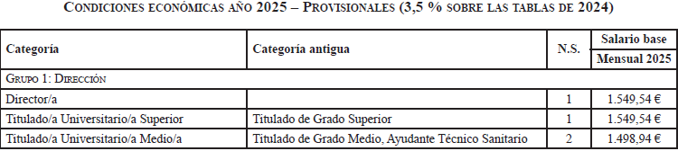 Año 2025: Al resultado del incremento del párrafo anterior (si procediese), se aplicará un incremento del 3,5 % sobre todos los conceptos económicas para todas las categorías profesionales.