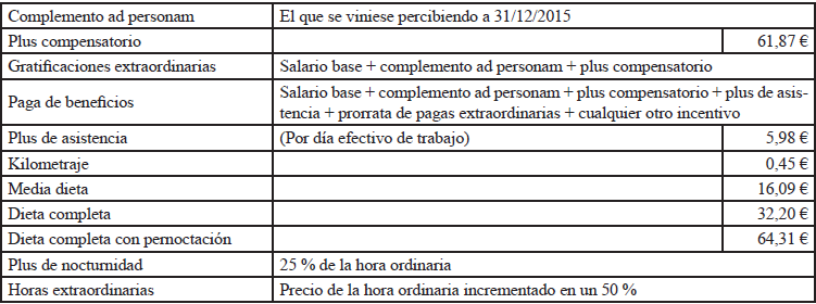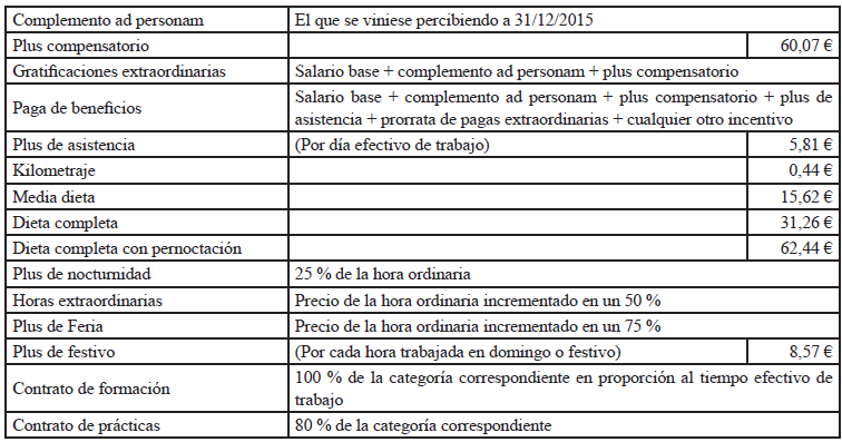 Se mantiene el complemento ad personam derivado de la antigüedad consolidada que tuviesen las personas trabajadoras en la cuantía que tuviesen el 31 de diciembre de 2015 (modificada en función de si ha variado el porcentaje de jornada contratada). Dicho complemento no tendrá carácter revalorizable, ni absorbible, ni compensable.