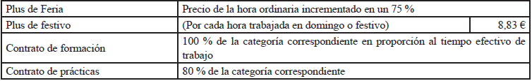 Plus de nocturnidad: Cada hora trabajada en horario nocturno, regulado en el artículo 49, tendrá un incremento del 25 % sobre el valor de la hora ordinaria salvo que el salario se haya establecido a que el trabajo sea nocturno por su propia naturaleza.