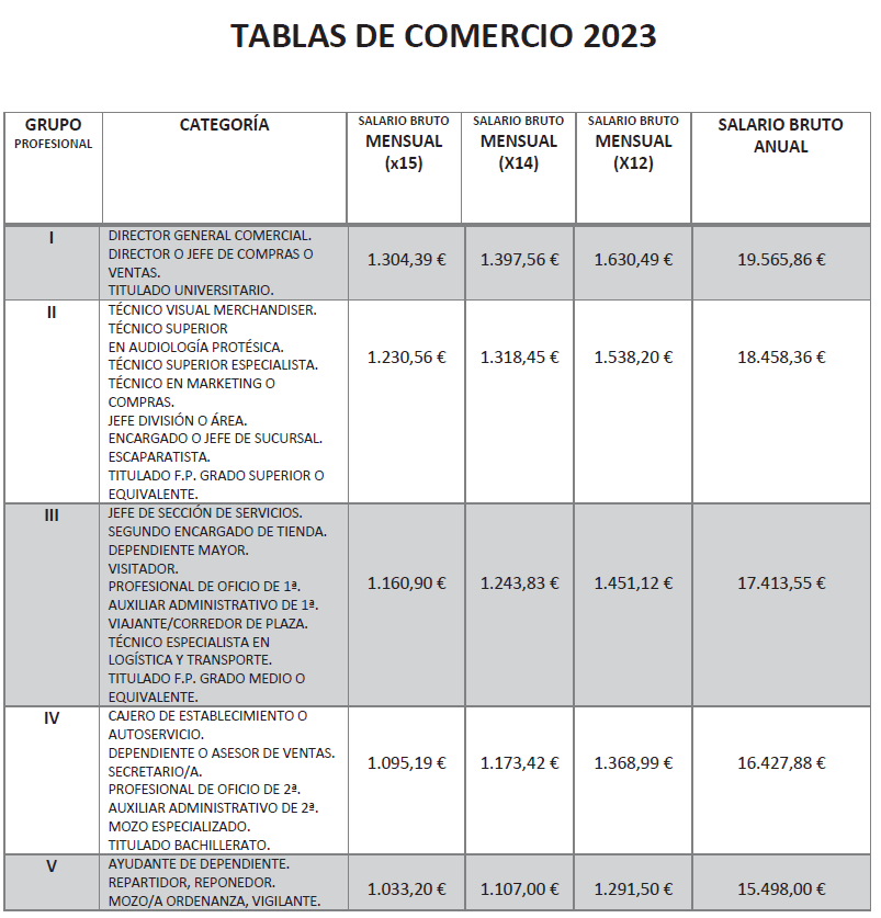 Todos los conceptos económicos del convenio se han incrementado en un 2,5%, con respecto a los del año 2022.