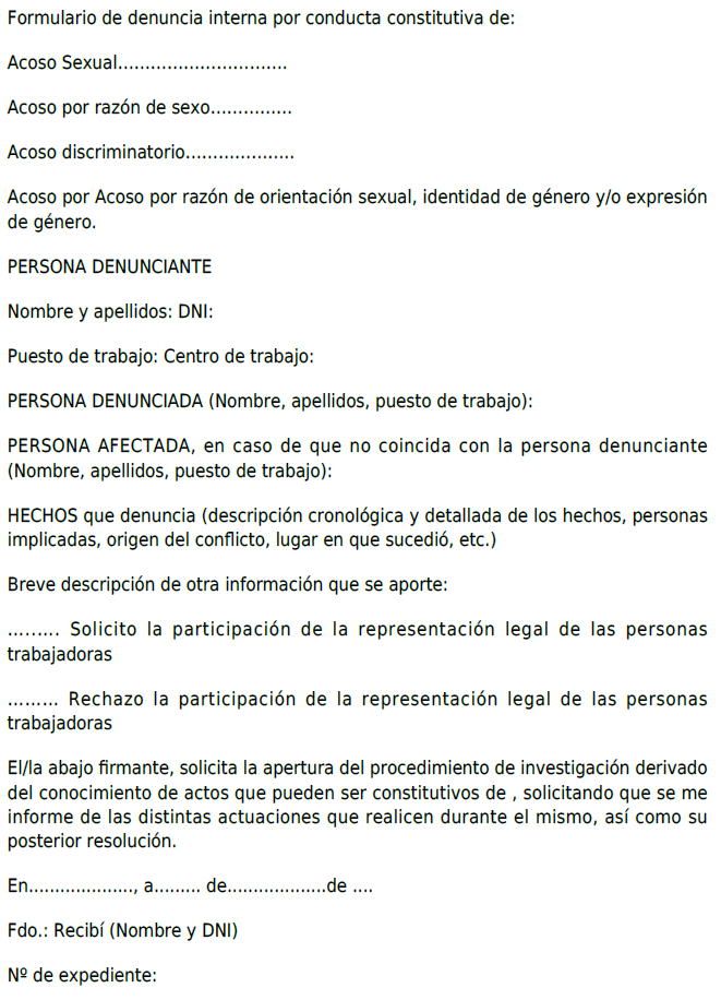 La denuncia o queja puede presentarse por la persona afectada o por quien ésta autorice, mediante escrito dirigido a la dirección de la empresa de manera directa, o bien a la representación legal de los trabajadores a través de los canales que puedan existir en la empresa. También podrá formular una denuncia de acoso cualquier persona que tenga conocimiento de la situación.