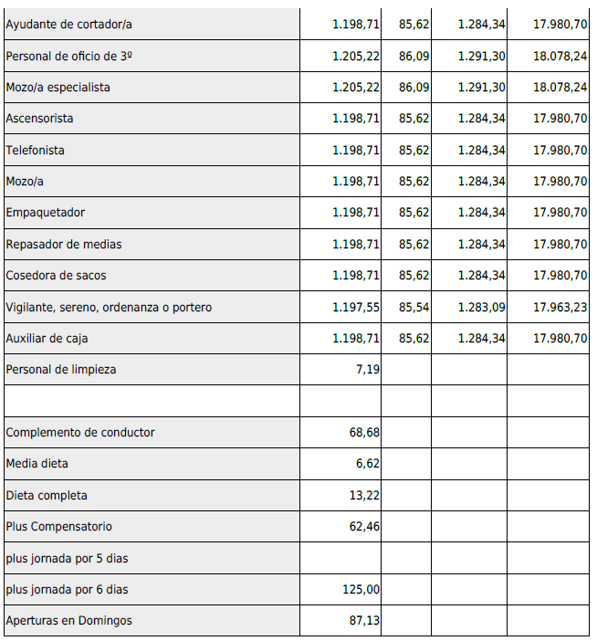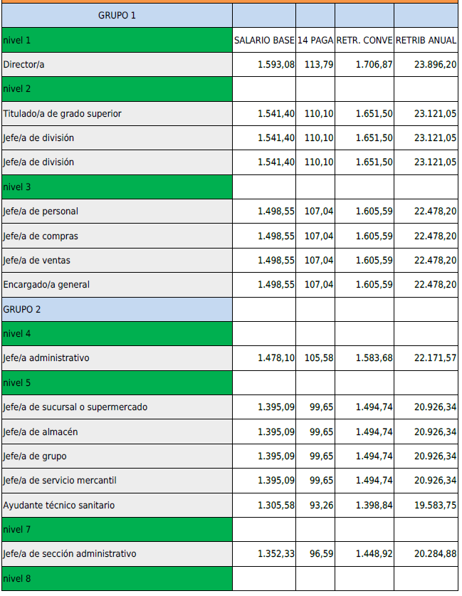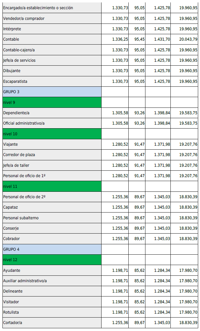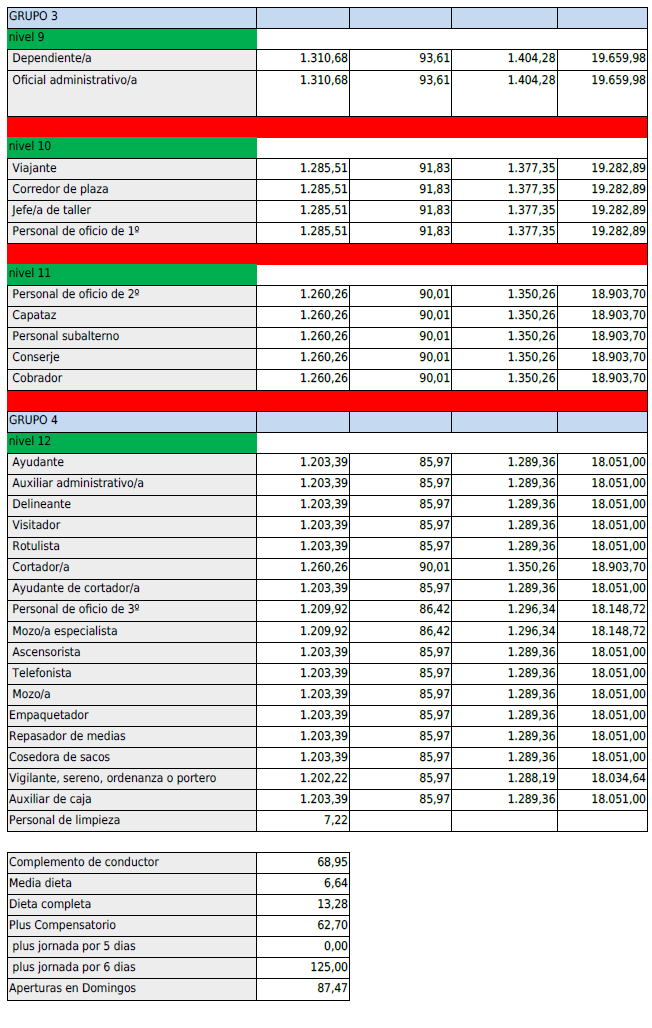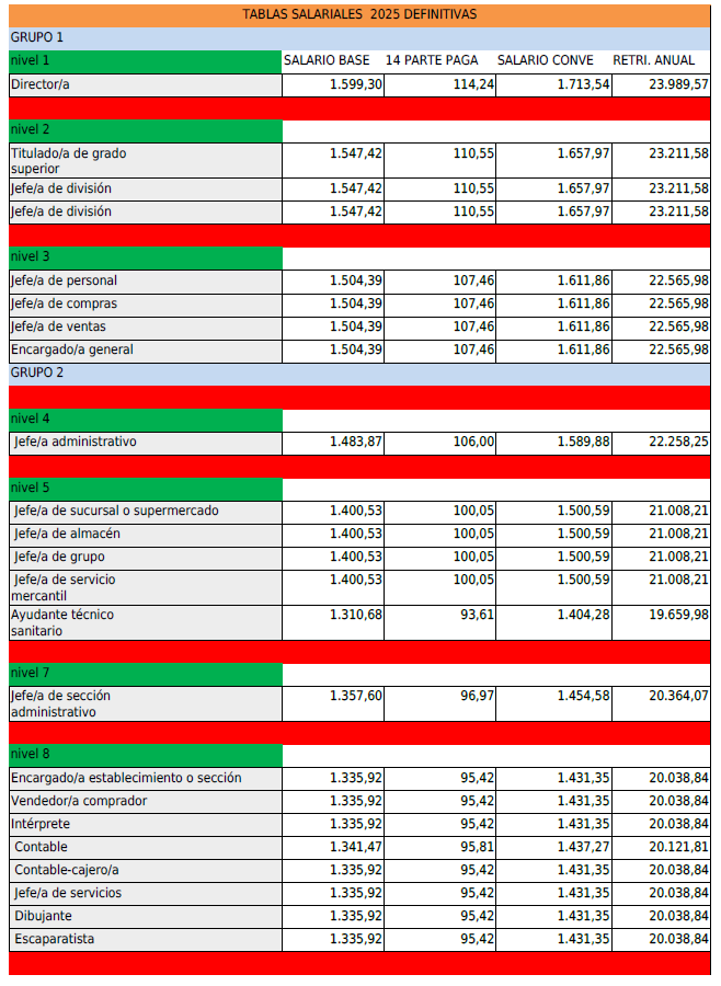 TABLAS SALARIALES DESDE ENERO 2025.